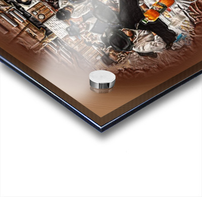 Printed to the edge - Ready to hang - provided with 4 premium polished aluminum stand off ( wall screws and mounting hardware provided )