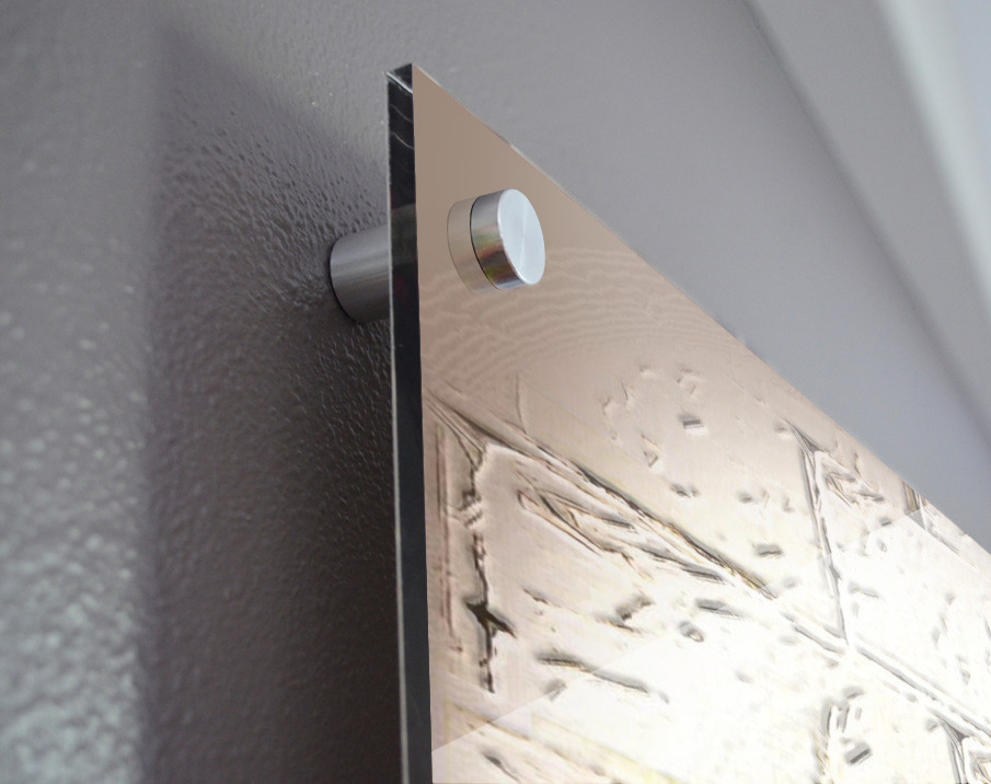 Impression sur acrylique avec entretoises ( cylindres métalliques )